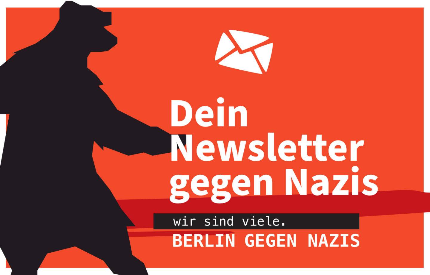 Abonniere den BERLIN GEGEN NAZIS-Newsletter und sei Teil einer aktiven Stadtgesellschaft. Erhalte regelmäßig Informationen, wie du dich in Berlin gegen Rechtsextremismus, Rassismus, Antisemitismus und Verschwörungsideologien engagieren kannst – mit aktuellen Veranstaltungen, Aktionen auf der Straße und Aktivitäten unserer Partner*innen.